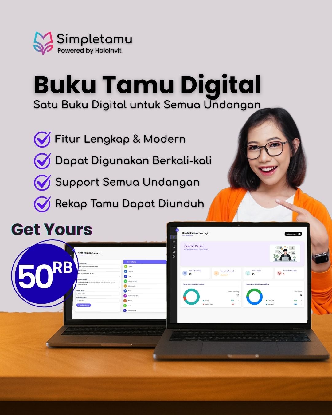 Haloinvit menghadirkan undangan digital berbasis website yang praktis, elegan, dan cocok untuk berbagai jenis acara — mulai dari pernikahan, ulang tahun, hingga acara formal. Desain modern yang responsif dan dilengkapi fitur buku tamu untuk pengalaman pengelolaan tamu jadi lebih mudah dan hemat waktu.